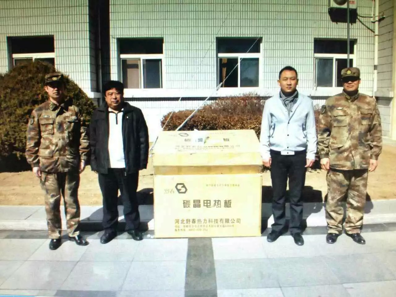 2016年3月10日河北舒春公司走進承德市平泉縣66435部隊,為哨所免費安裝了一萬多元的碳晶電熱板,給軍營送去了溫暖。