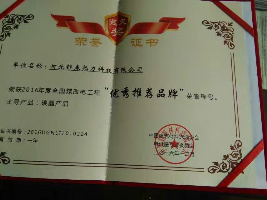 河北舒春碳晶榮獲藍天獎 ![]()