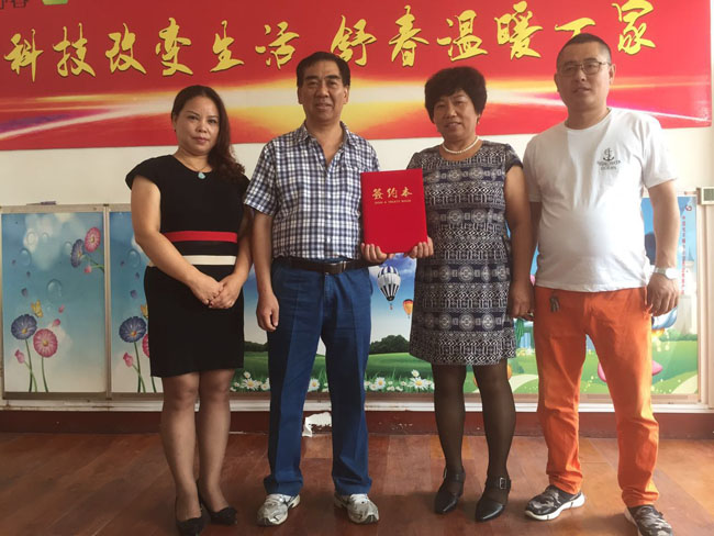河北舒春與館陶縣簽訂合作代理 8月15日,河北邯鄲市館陶縣平蘭玉經(jīng)理來(lái)公司 ,簽訂縣級(jí)代理協(xié)議。