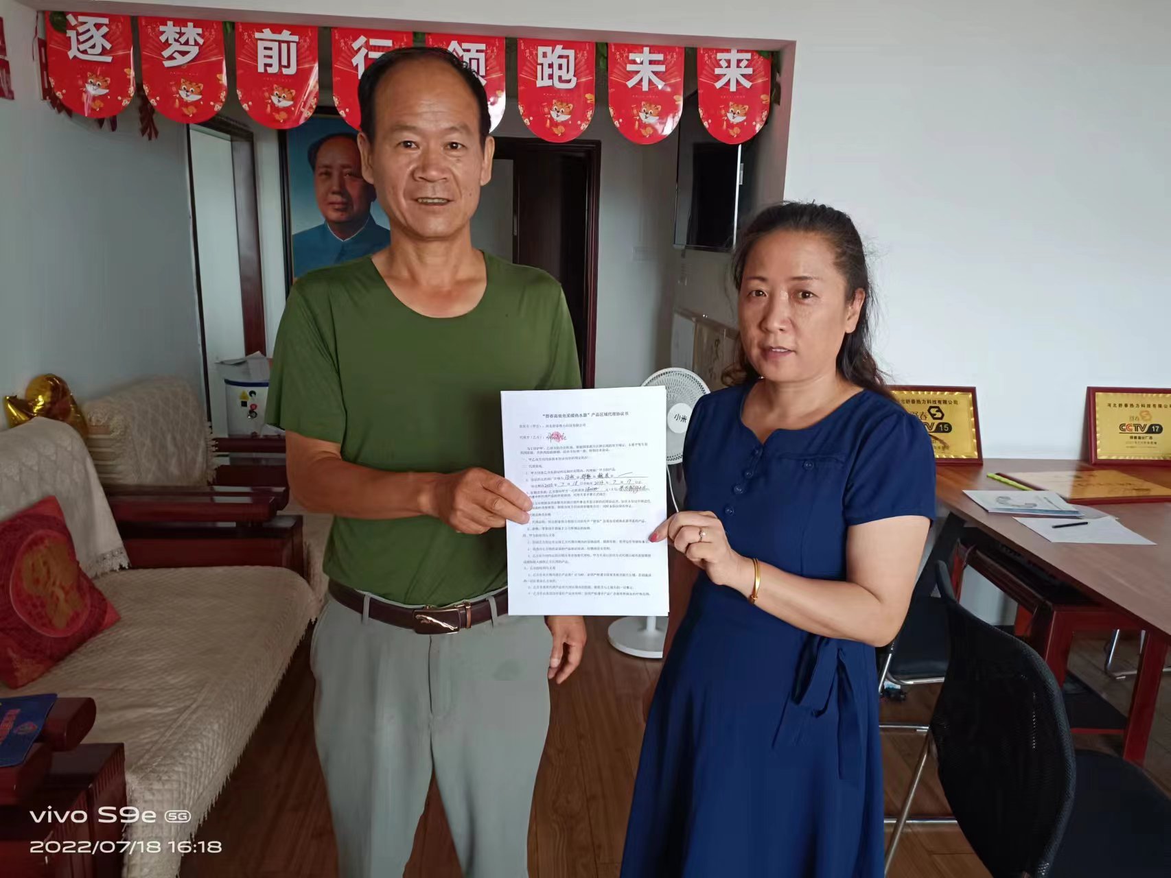 祝賀邵總簽約魏縣總代理 寒來暑往,秋收冬藏。盡管現(xiàn)在是酷暑伏天,我們還是得為冬季嚴寒取暖做好充分的準備。今年我們公司生產研發(fā)了一款高效電采暖熱水器。這款產品是“煤改電”用戶和家里安裝暖器片、地暖居民的取暖最佳替代品。它節(jié)能省電、節(jié)約空間,受到廣大用戶的贊美和認可。 邵總非常關注和認可這款產品,7月18日邵總成功簽約魏縣總代理